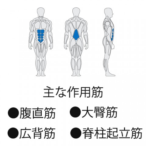 | 主な使用筋 | 腹直筋、大臀筋、広背筋、脊柱起立筋 |